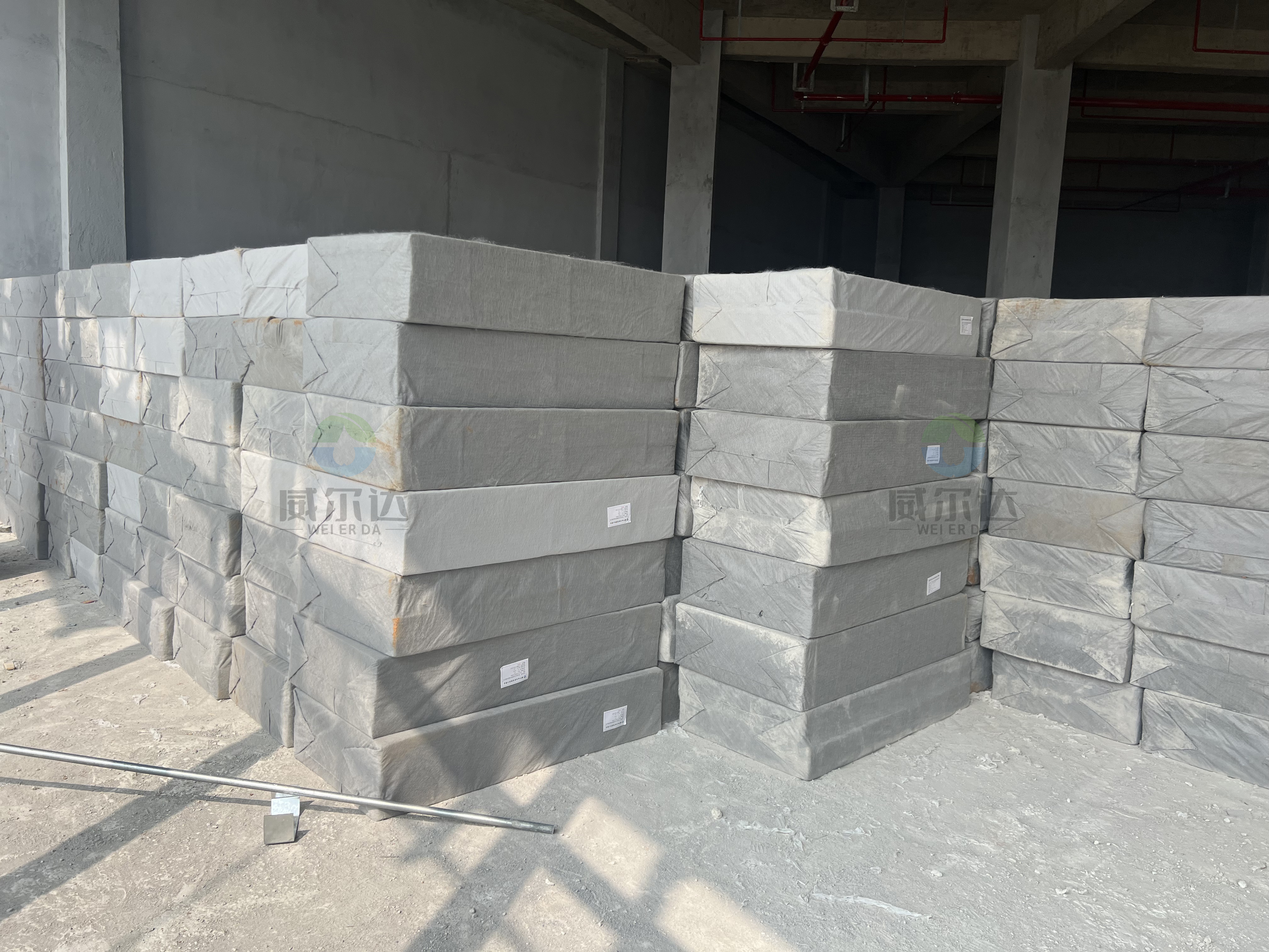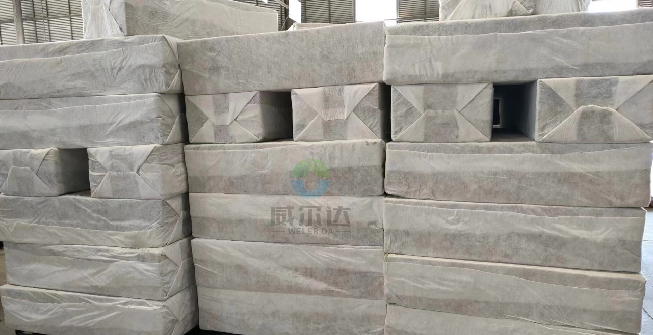 碳纖雨水收集模塊由高強力耐酸堿濾透包裹布包裹碳纖雨水收集模塊芯材形成的長方體產品。